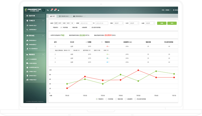 车队管理员可通过云平台的报表数据,进行更精细化的车队管理。