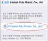 ② iOS9后的IPHONE会出现下图的提示,这里只有“取消”,没有看到“信任”的选择了,这时候你需要先记住这个企业的名字,企业的名字就是以co.Ltd结尾