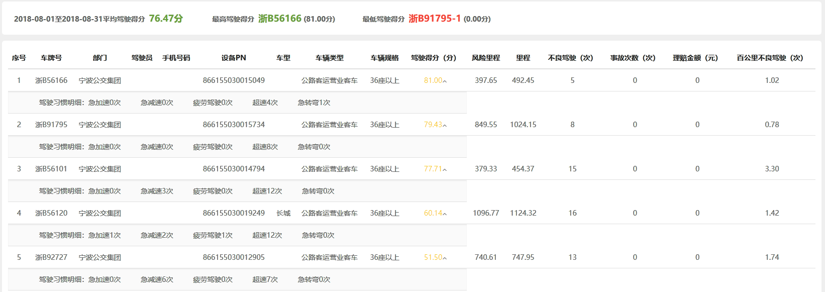 根据宁波公交需求,制定数据报表,量化管理驾驶员,为企业人员监管、安全培训提供数据支持。