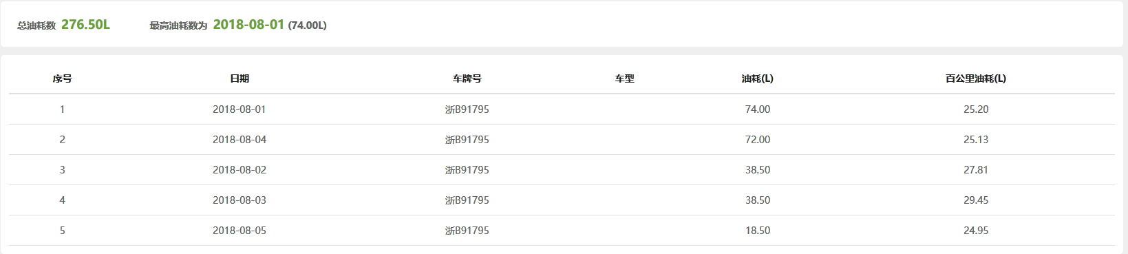 油耗数据管理:根据车龄,车型,驾驶行为,载重量获取到实际的耗油量数据。