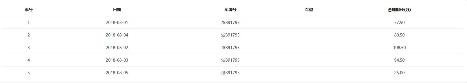 怠速时长管理:通过怠速时长统计,提供管理依据,督促驾驶员严格控制车辆怠速时长,降低车辆的油耗及发动机的损耗。