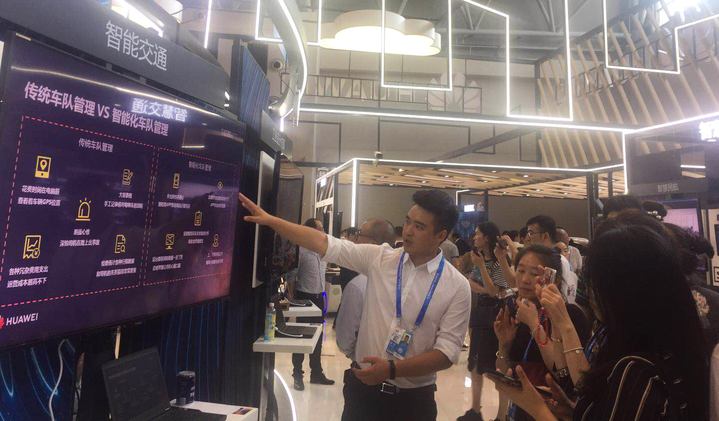华为作为重要承办方,搭建了千余平方米的展台,以“新ICT,迈向数字化转型之路”为主题,展现华为在智能产业领域的智能设备和为行业、企业提供的解决方案。成为智能交通作为华为云严选合作伙伴,受邀联合参展,为嘉宾呈现智能化车队管理云服务的多种管理场景。