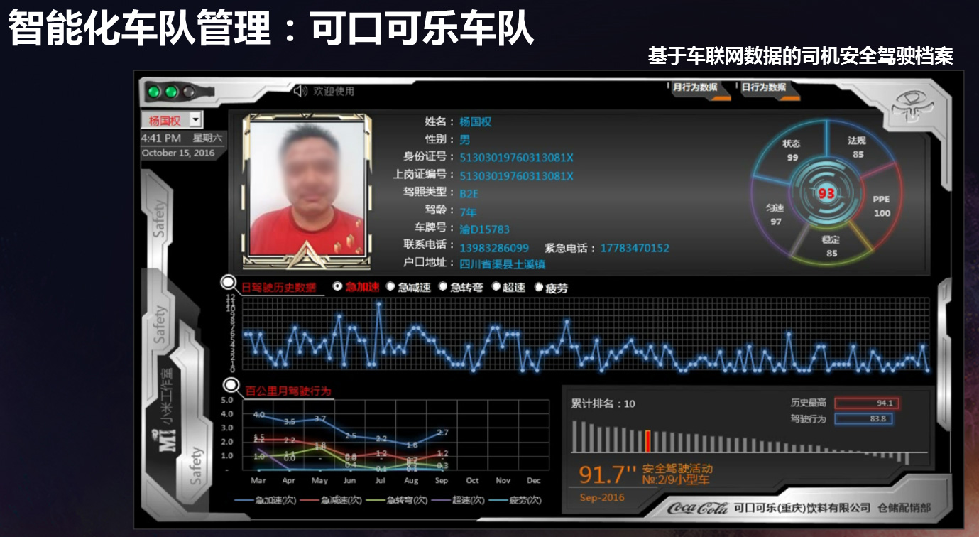 2016年,重庆可口可乐正式委托成为智能交通为其提供车队管理云服务,提高车队风险管理水平。成为智能交通通过驾驶行为数据、理赔数据的数据清洗、特征提取、数据匹配,找到导致车队高风险的根本原因,通过定制化运营服务及措施,从源头上解决车队管理痛点,有效降低车队赔付率。